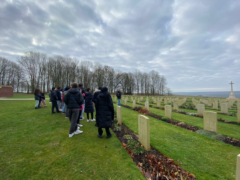 Cette action a donné lieu à la visite du musée Somme 1916 et du circuit du souvenir sur les champs de bataille de la Première Guerre mondiale, à la découverte du Mémorial de la Shoah de Drancy – dans le cadre d’un travail sur les génocides des Juifs et des Tziganes –, ainsi qu’à l’étude de la transmission mémorielle avec venue en classe d’un rescapé du génocide des Tutsis.
